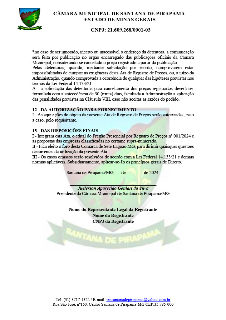 Câmara Municipal - Minas Gerais "Com Deus seguiremos nossos caminhos e faremos nossa História"